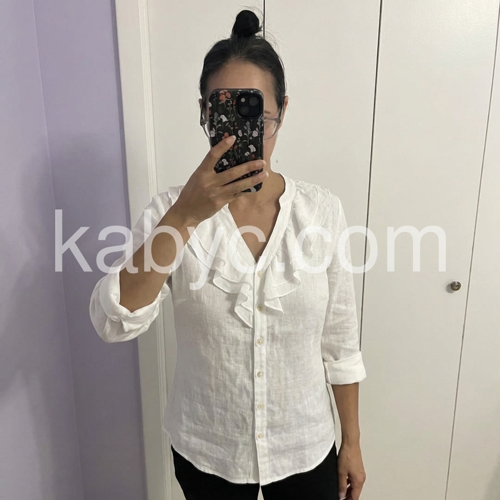 White Ruffle V-Neck Linen Blouse
