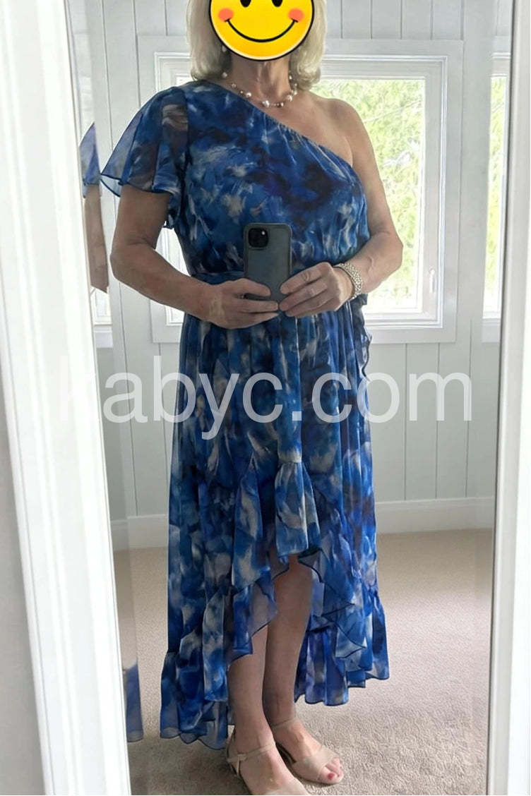 Dramatic Blue Watercolor Maxi Dress