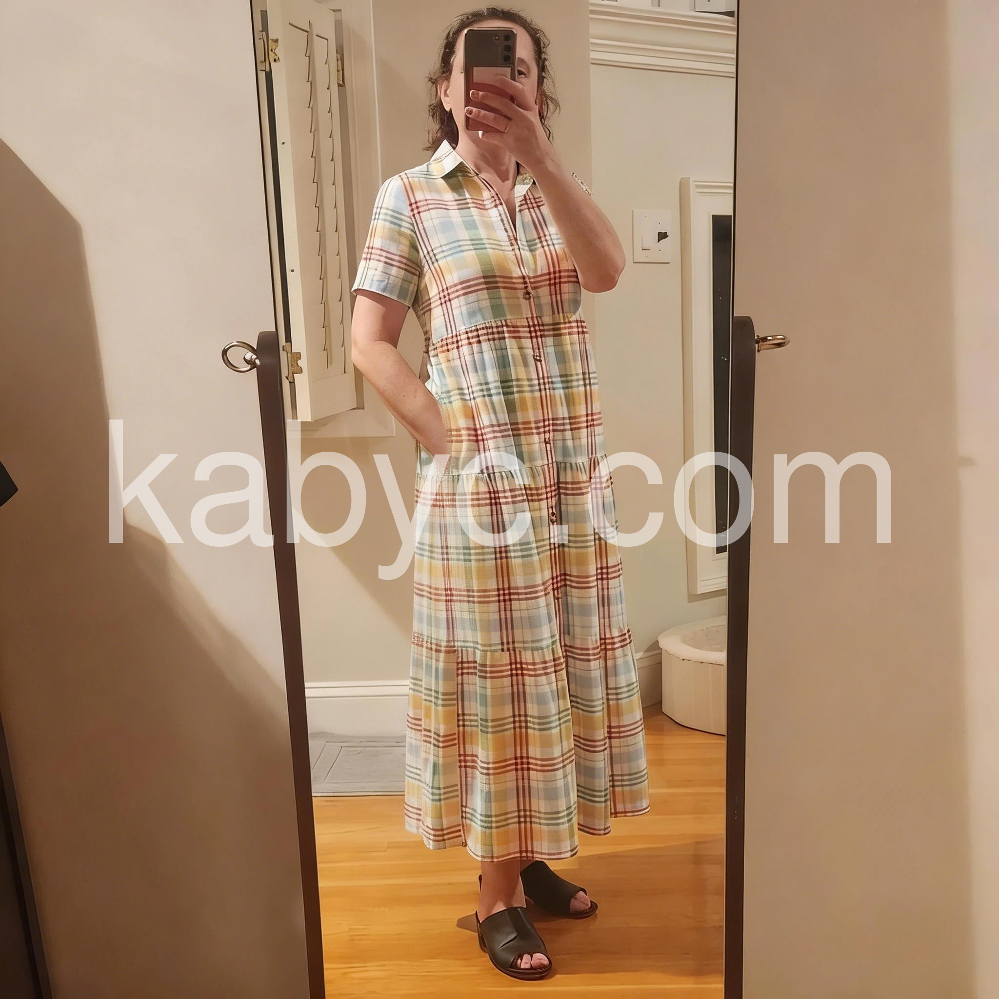 This dress is so versatile and effortless. The fabric is light and airy, making it a staple for my summer wardrobe. I love the short sleeves and the subtle pastel plaid design. Great value for the price.