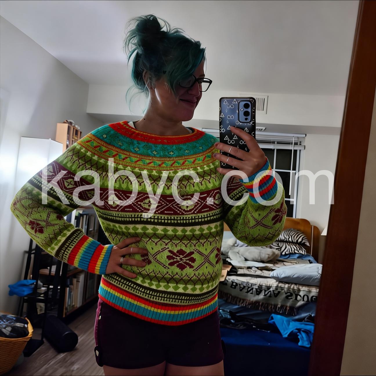 Steal the spotlight in this unique sweater knit in bright shades and a bold stripy pattern. The cozy style has a relaxed fit and pulls on with a wide neckline that shows off your collarbone. Style it with faded straight-leg jeans and combat boots for a 90s-vibe look.