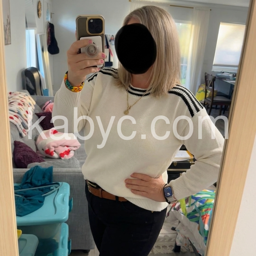 Ivory Color Block Round Neck Sweater