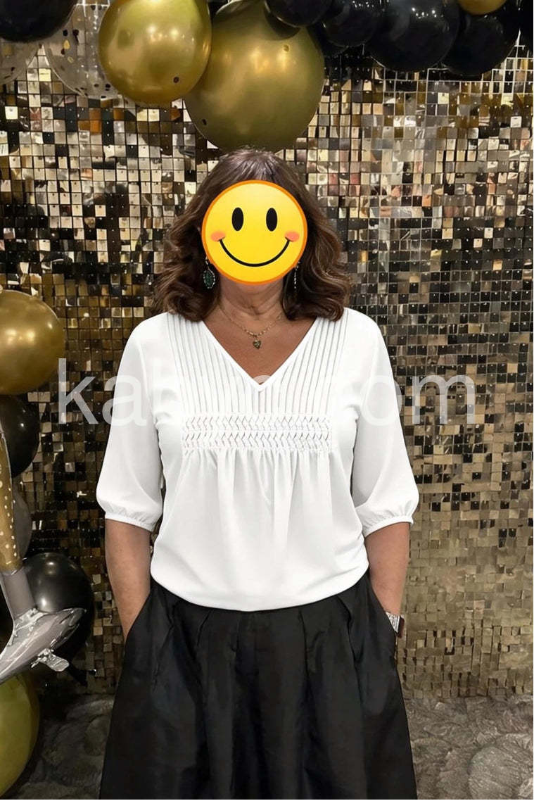 Classic White Plain V-Neck Top