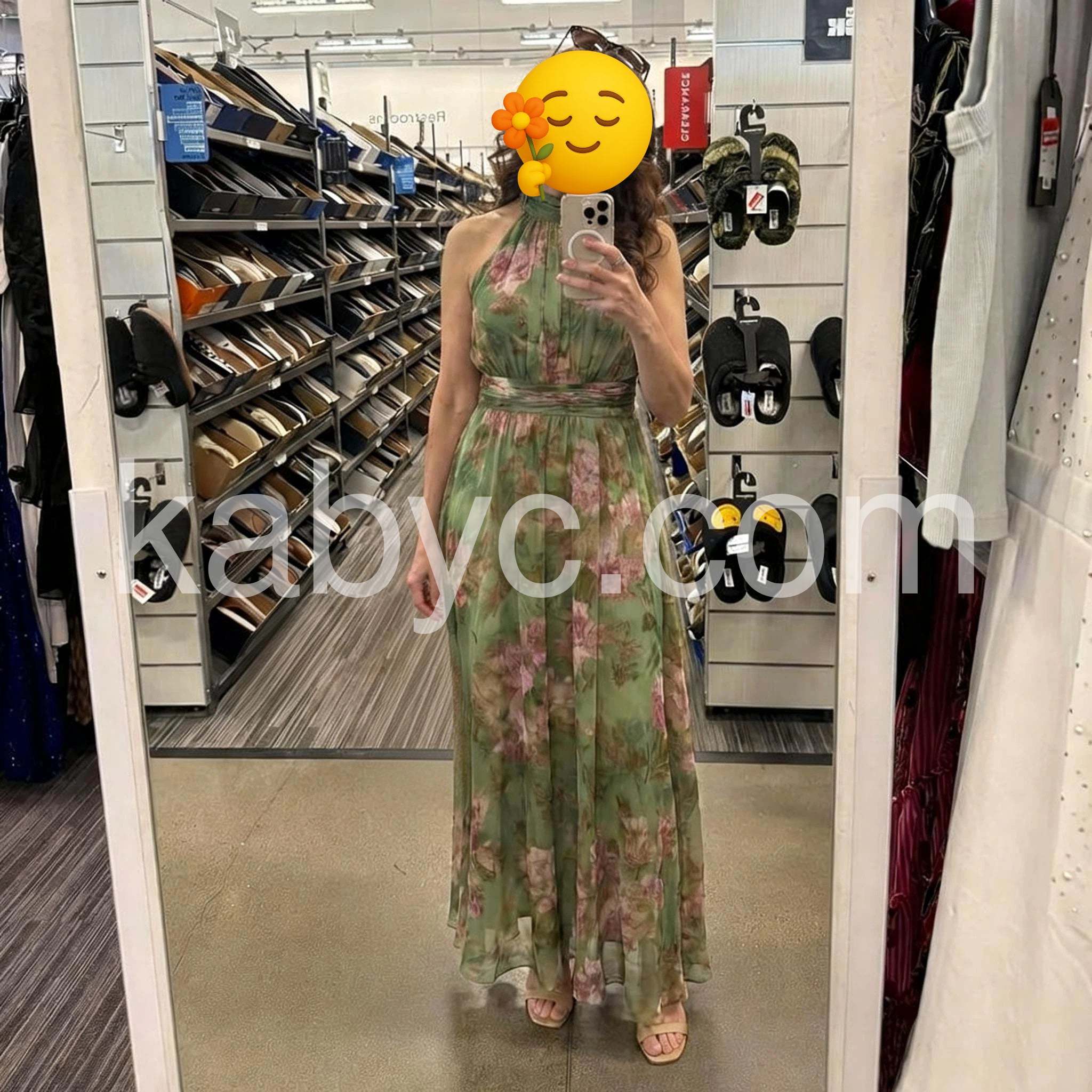This elegant maxi dress features a striking green floral print that brings natural sophistication to your wardrobe. The halter neckline provides flattering support and a refined silhouette, while the flowing maxi length offers graceful movement and versatile styling options. Perfect for garden parties, summer weddings, or elevated casual occasions, this piece combines timeless design with contemporary flair. The botanical print adds visual interest without overwhelming the silhouette, making it an excellent investment for those seeking quality basics with distinctive character.