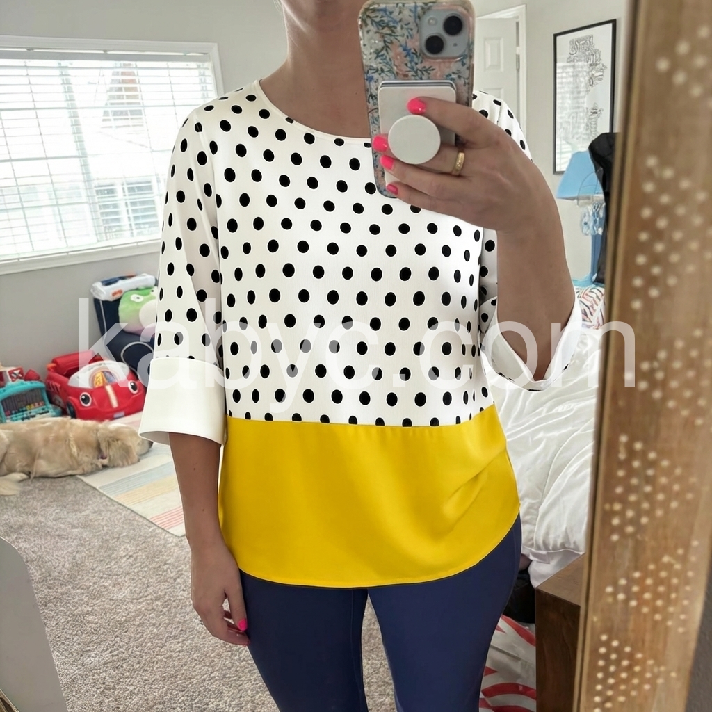 Such a chic and stylish piece. It looks exactly like the photos. The transition from the polka dot pattern to the solid yellow is flawless. It looks like an expensive boutique item but at a fraction of the price.