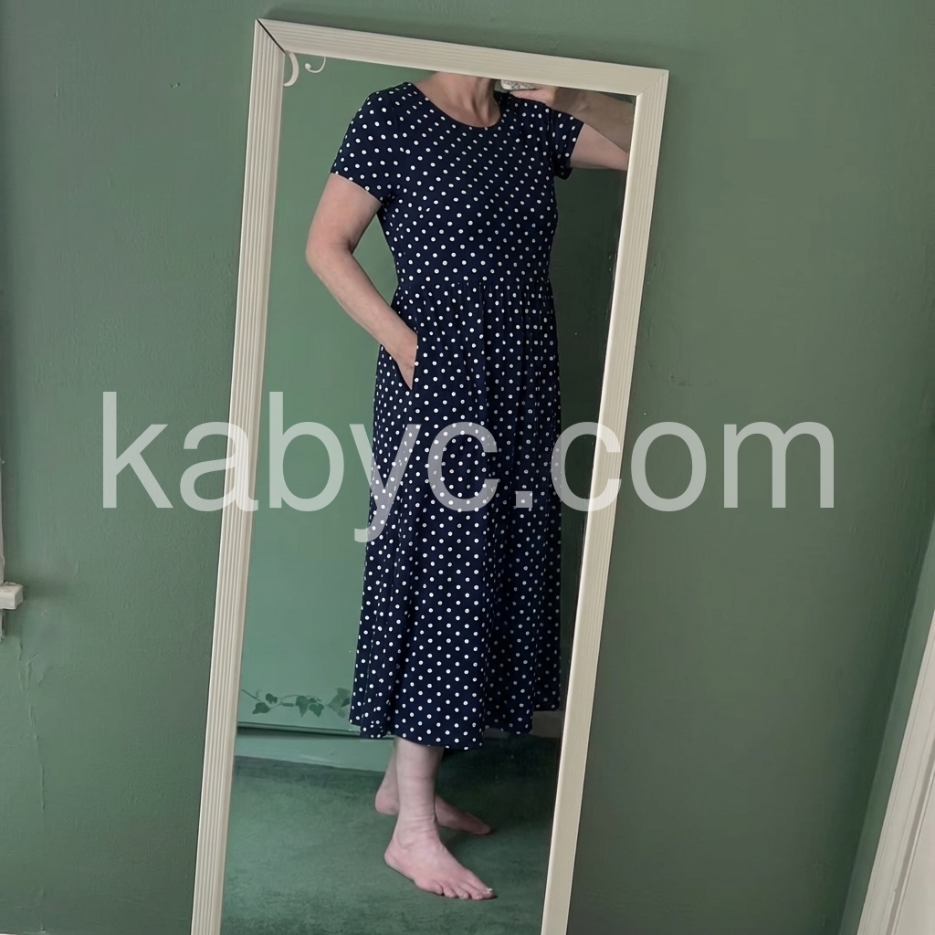 Such a great e-commerce find! Honestly it looks and feels way more expensive than it is. The stitching is solid, the fit is relaxed but not baggy, and the dotted pattern is just precious.