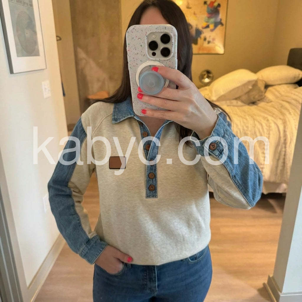 Groovy Button Front Denim Long Sleeve Top