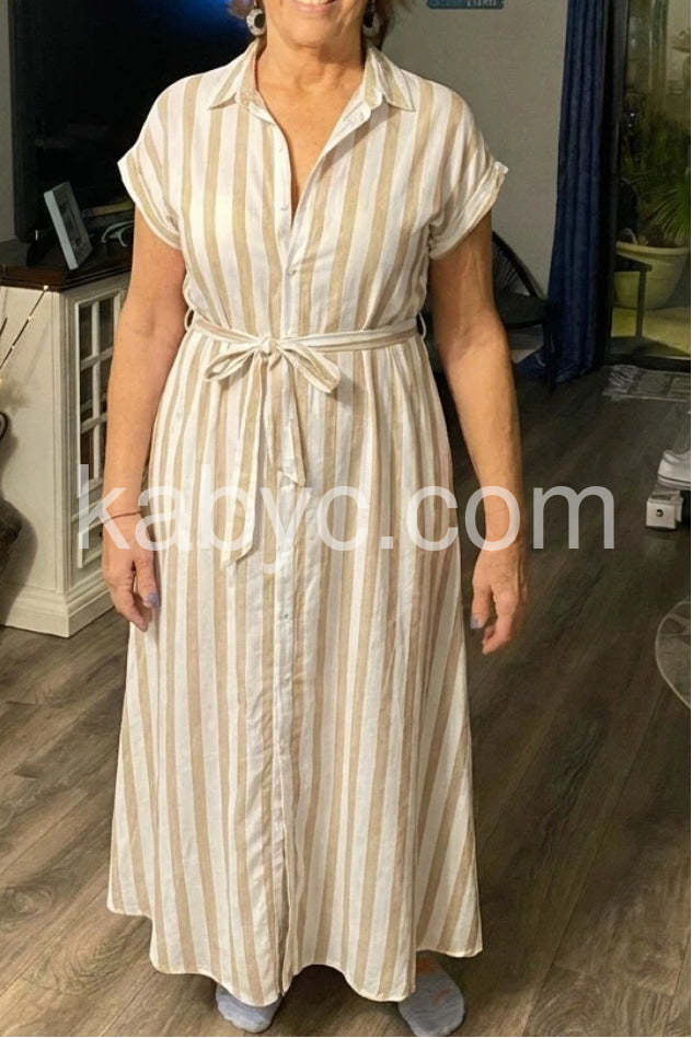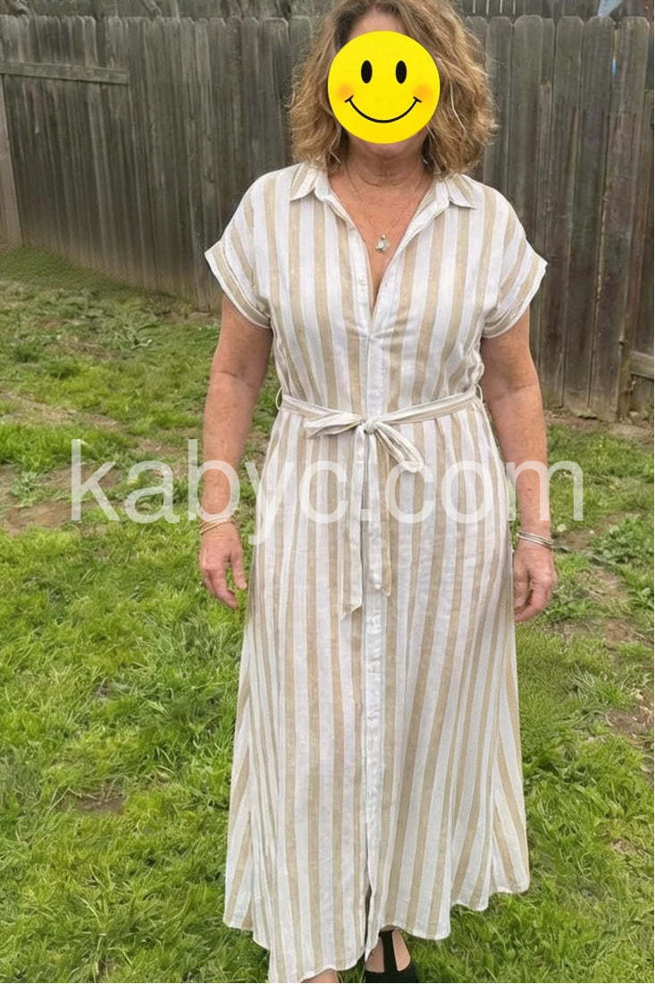 Make a breezy, fashion-forward statement in this Stylish Short Sleeve Striped Maxi Dress. Designed with a timeless vertical stripe pattern—typically in crisp combinations like navy and white or black and cream—it offers a clean, elongating silhouette that flatters every figure. The dress features a classic round or V-neckline, short sleeves for relaxed comfort, and a flowing floor-length skirt that moves gracefully with every step. Crafted from lightweight, breathable fabric such as cotton or rayon, it’s perfect for warm-weather days, beach outings, brunches, or summer vacations. Its minimalist yet chic aesthetic makes it easy to dress up with sandals and statement jewelry or keep casual with sneakers and a straw tote. Effortlessly combining comfort, versatility, and coastal-inspired charm, this striped maxi dress is a must-have for your warm-weather wardrobe.