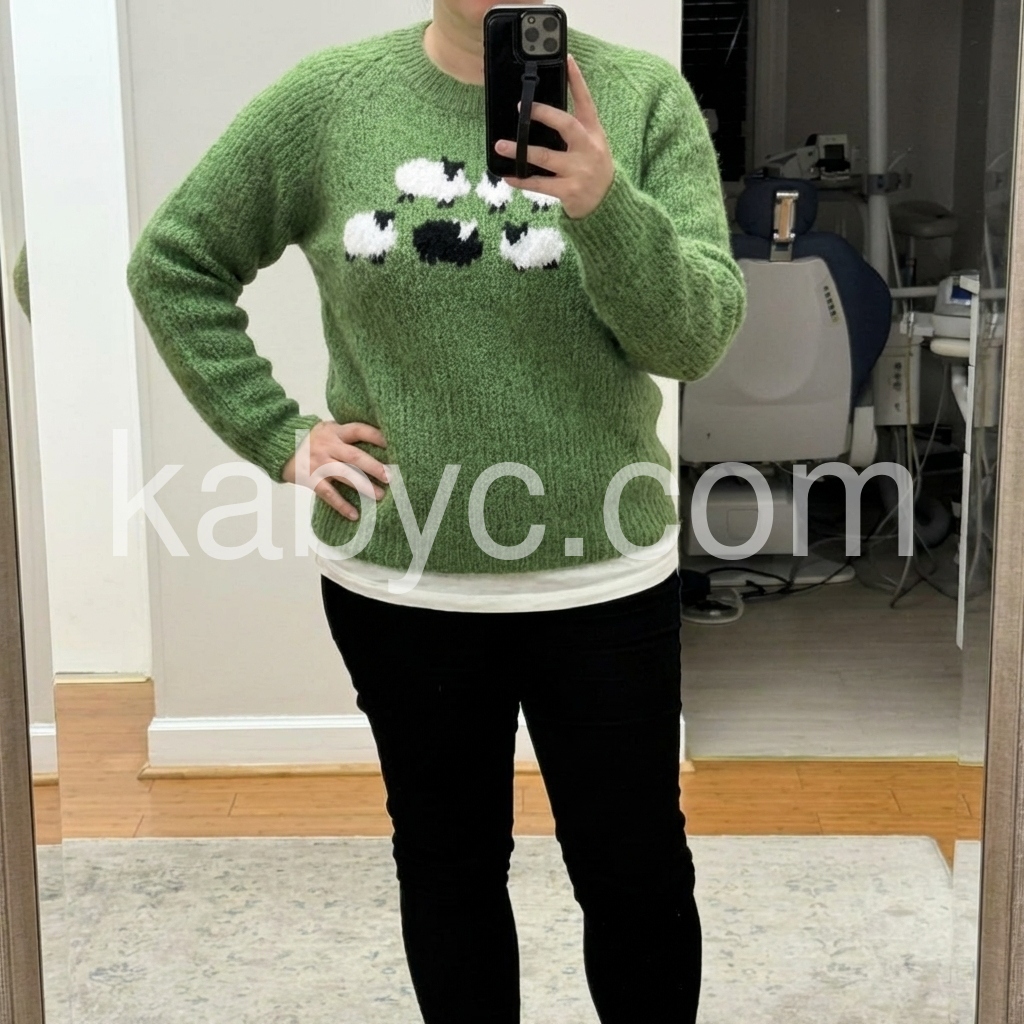 Green Long Sleeve Print Sweater