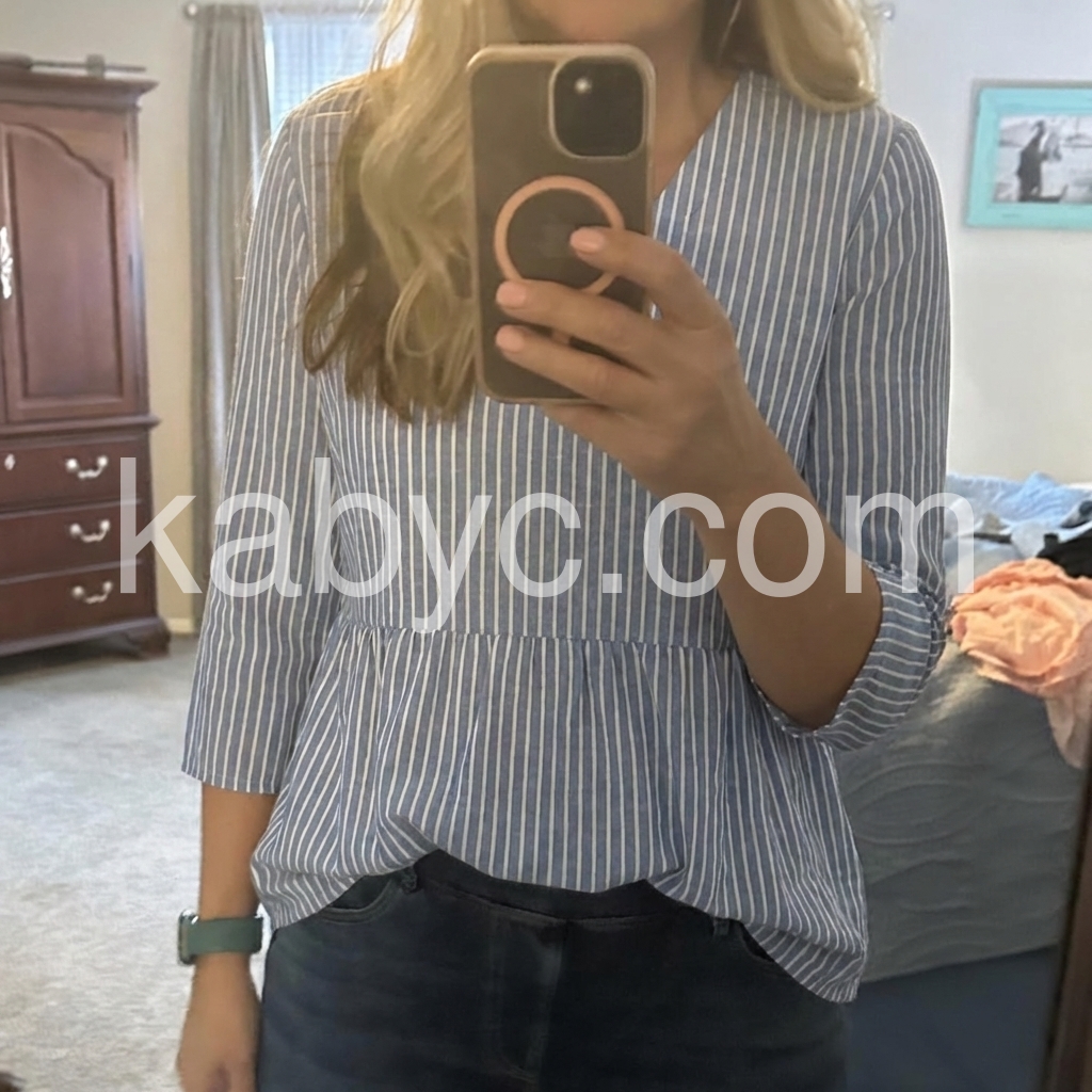 This beautiful stripped top is the perfect compliment for jeans or casual wear. Fully covers my waist and back but isn’t too long. The fabric is soft and comfortable and easy to care. A perfect top for summer.