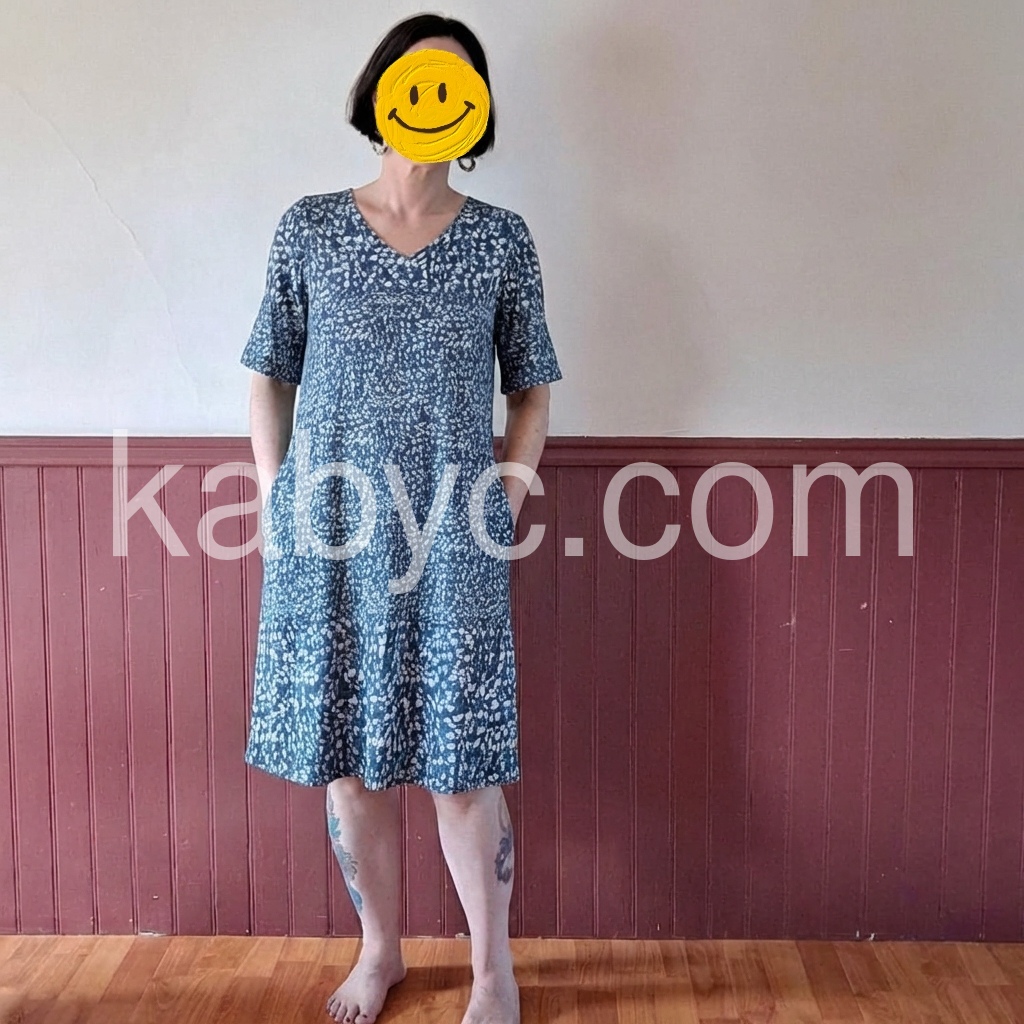 This breezy shift dress is made for sunny days. The soft V-neck and flared mid-length sleeves keep you cool while adding a delicate touch.