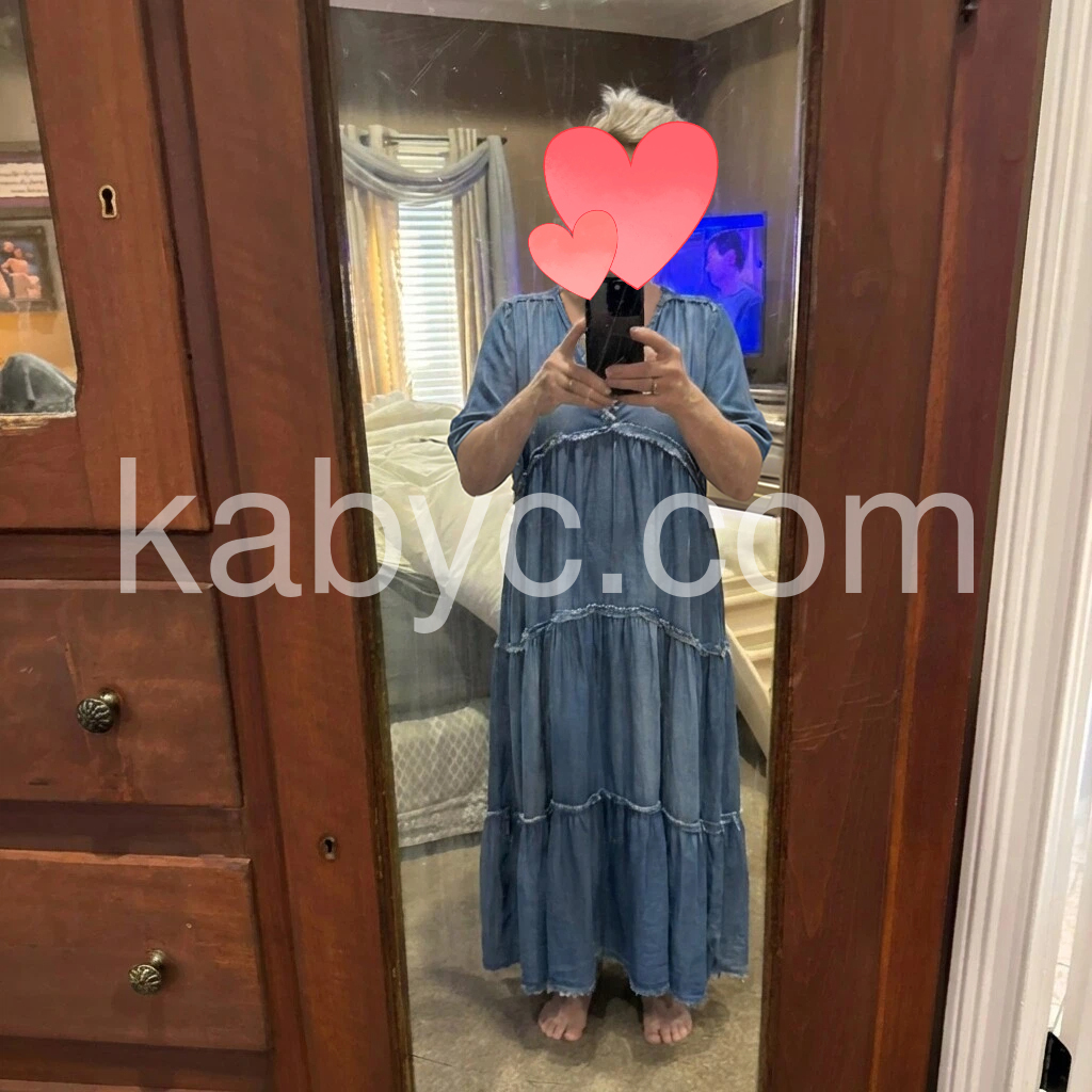 I absolutely love this dress! The denim color is beautiful and the tiered ruffle details give it such a flattering, feminine look. It’s so comfortable and the fit is perfect flowy without feeling sloppy. The long sleeves and the soft, washed-in look make it perfect for everyday wear. It matches the photos really well and looks even nicer in person.