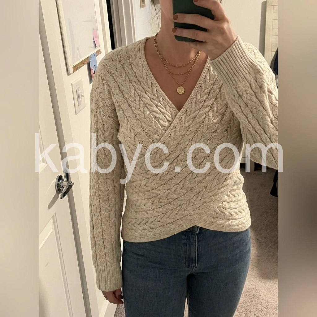 This apricot plain v-neck long sleeve sweater is a versatile addition to any wardrobe. Made with high-quality material, it offers both comfort and style. With its classic v-neck design and long sleeves, it can easily be dressed up or down for any occasion. Stay warm and elegant with this must-have piece.